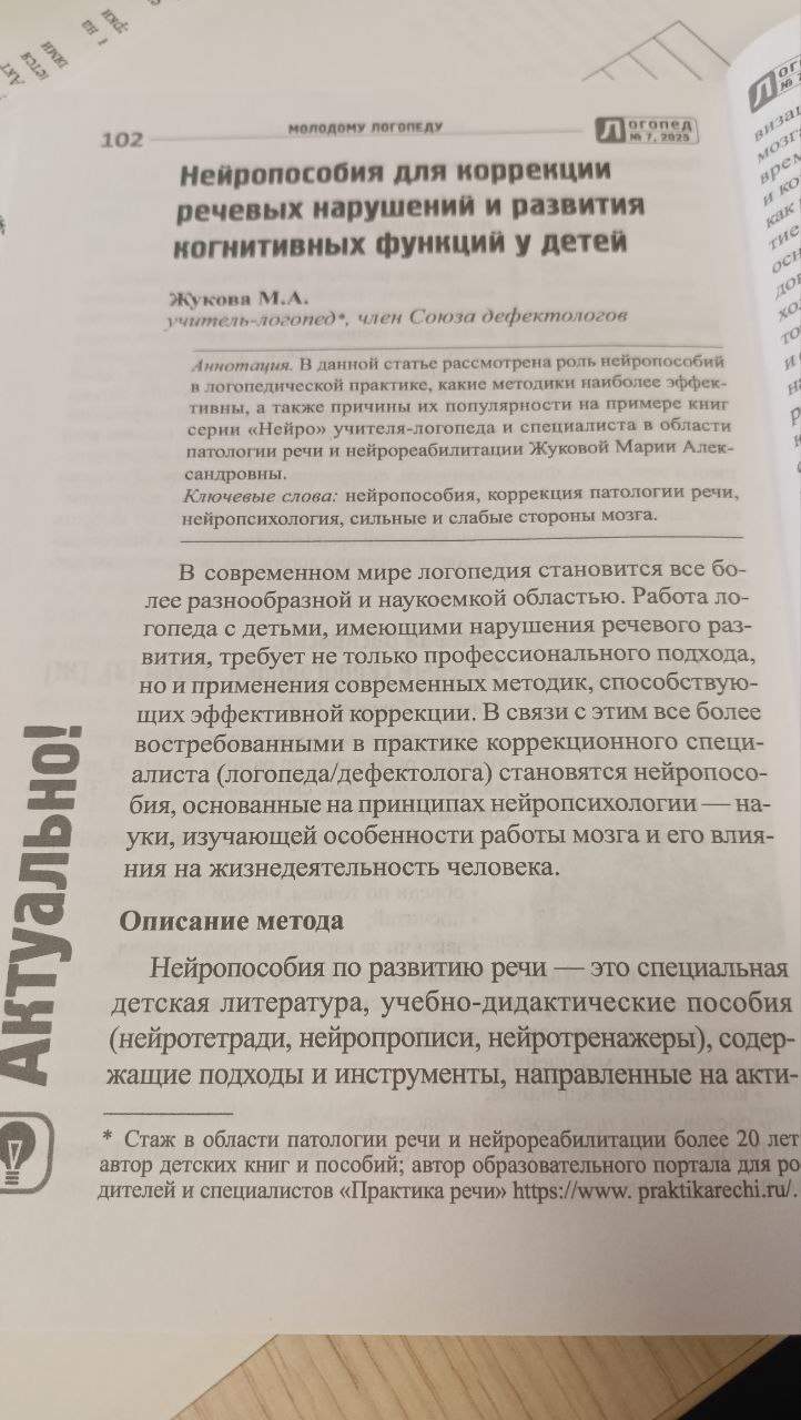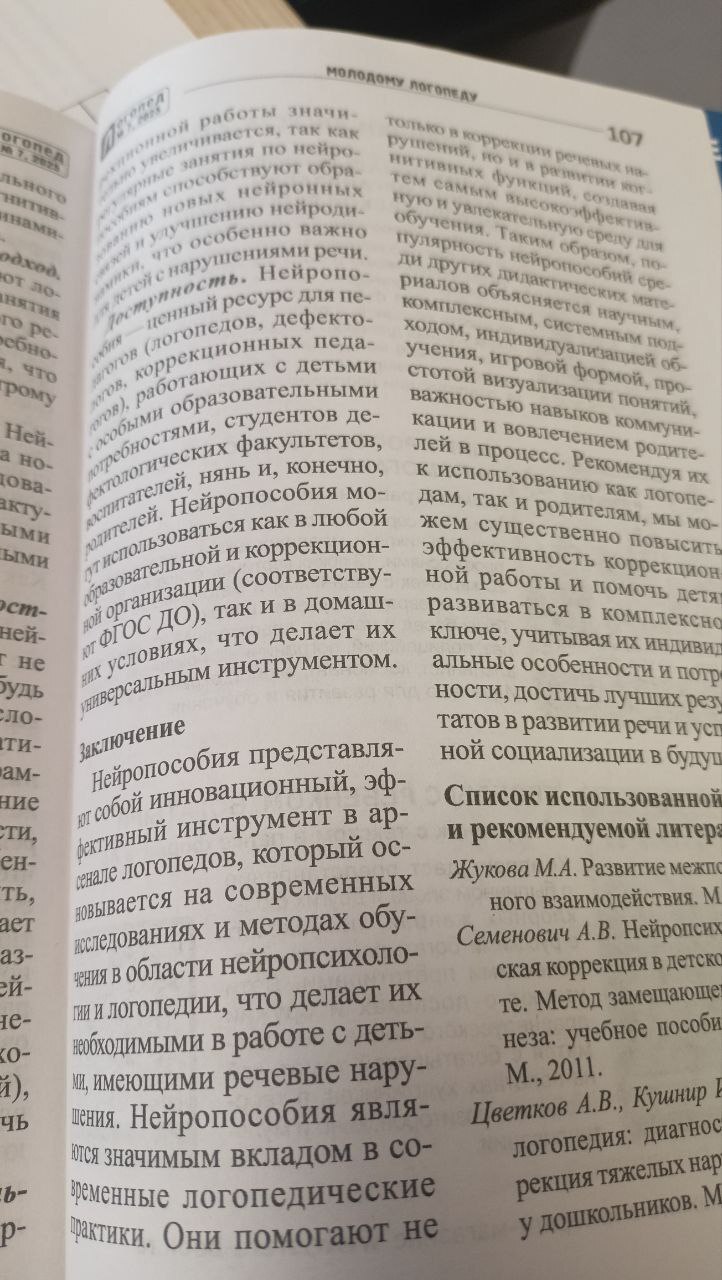 Друзья, хочу поделиться важным событием: в профессиональном журнале «Логопед» вышла моя новая статья — «Использование нейропособий в работе учителя-логопеда: эффективные современные стратегии для коррекции речевых нарушений и развития когнитивных функций у детей».