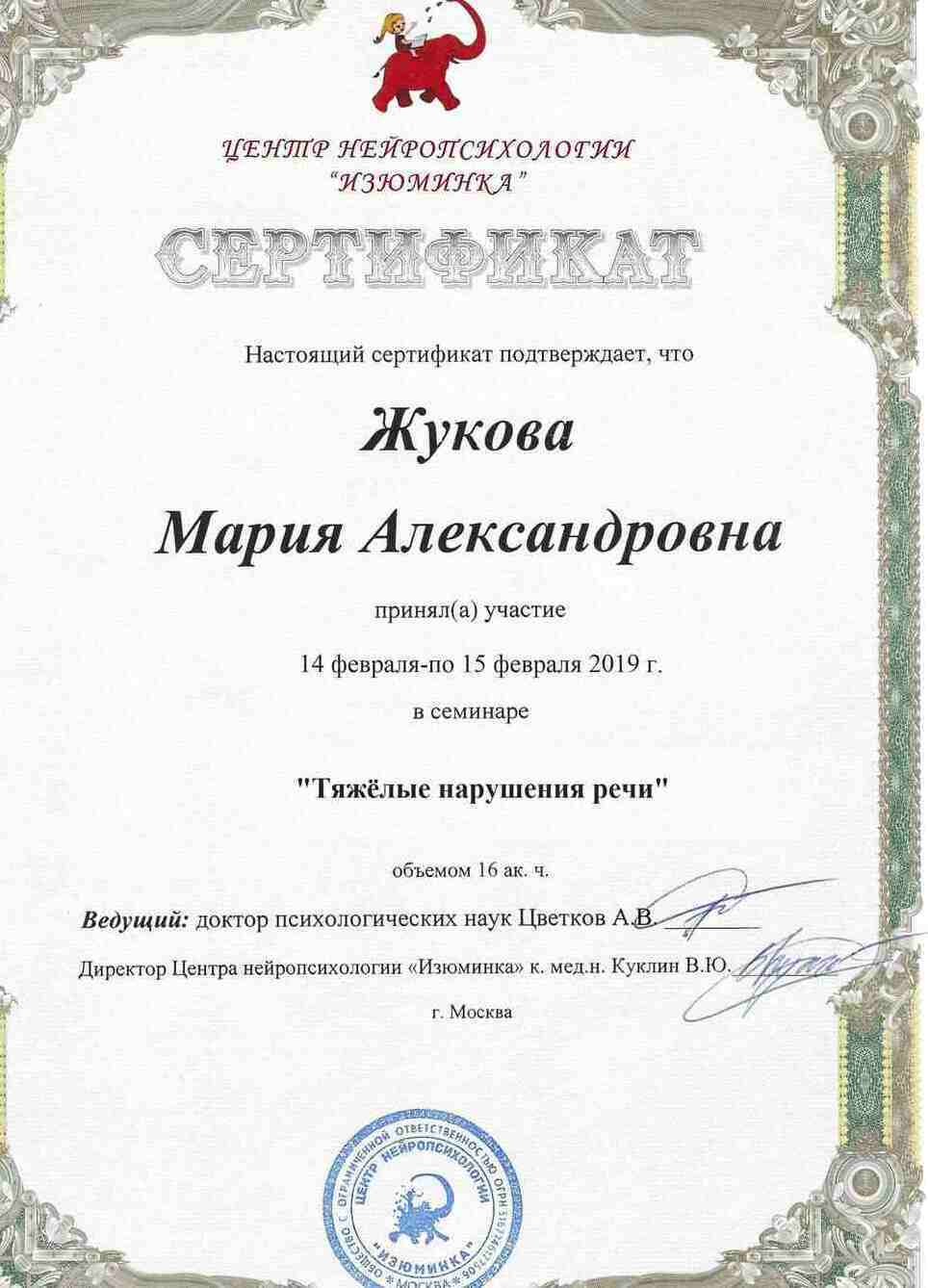 Добрый день! Хочу поблагодарить Марию Александровну за неоценимый вклад к нашего сына, за красивую речь, за ее наличие в принципе. А также за дальнейшее развитие, ведь от того, будет ли речь сформирована вовремя зависит, будет ли ребёнок нормально учиться. Кропотливая работа Марии Александровны с нашим сыном, направление нас, родителей в нужное русло для помощи сыну, дальнейшая нейрокоррекция дали необыкновенно качественный результат! Я первый и единственный раз встретила такой профессиональный и комплексный подход к лечению сына только на занятиях с Марией Александровной Жуковой. Спасибо!!! Елена, Михаил и Макар ❤️