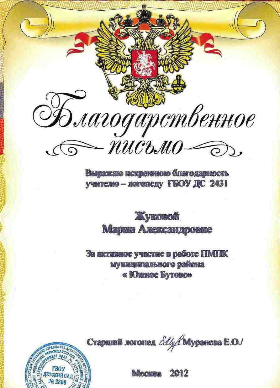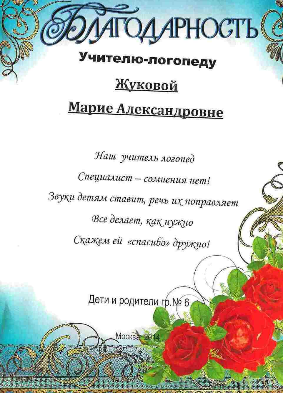 Всем добрый день! Хочу выразить свою благодарность Жуковой Марии Александровне!!! Человеку, наставнику, педагогу сыгравшую неоценимую роль в моей жизни и трудовой деятельности! Вот уже почти семь лет пользуюсь вашими методиками, учебниками, да и что греха таить и вашим опытом , которым вы делились с нами. Большое спасибо за тот огромный труд , за ту помощь , а иногда и просто надежду которую Вы даете людям.Ведь Вы не просто исправляете речь, Вы исправляете жизньребенку и его родителям. Большое Вам спасибо и низкий поклон Вам моя дорогая Мария Александровн, творческих побед и новых целей. С уважением Айнетдинова Любовь Павловна учитель-дефектолог ЦРИ Бутово.