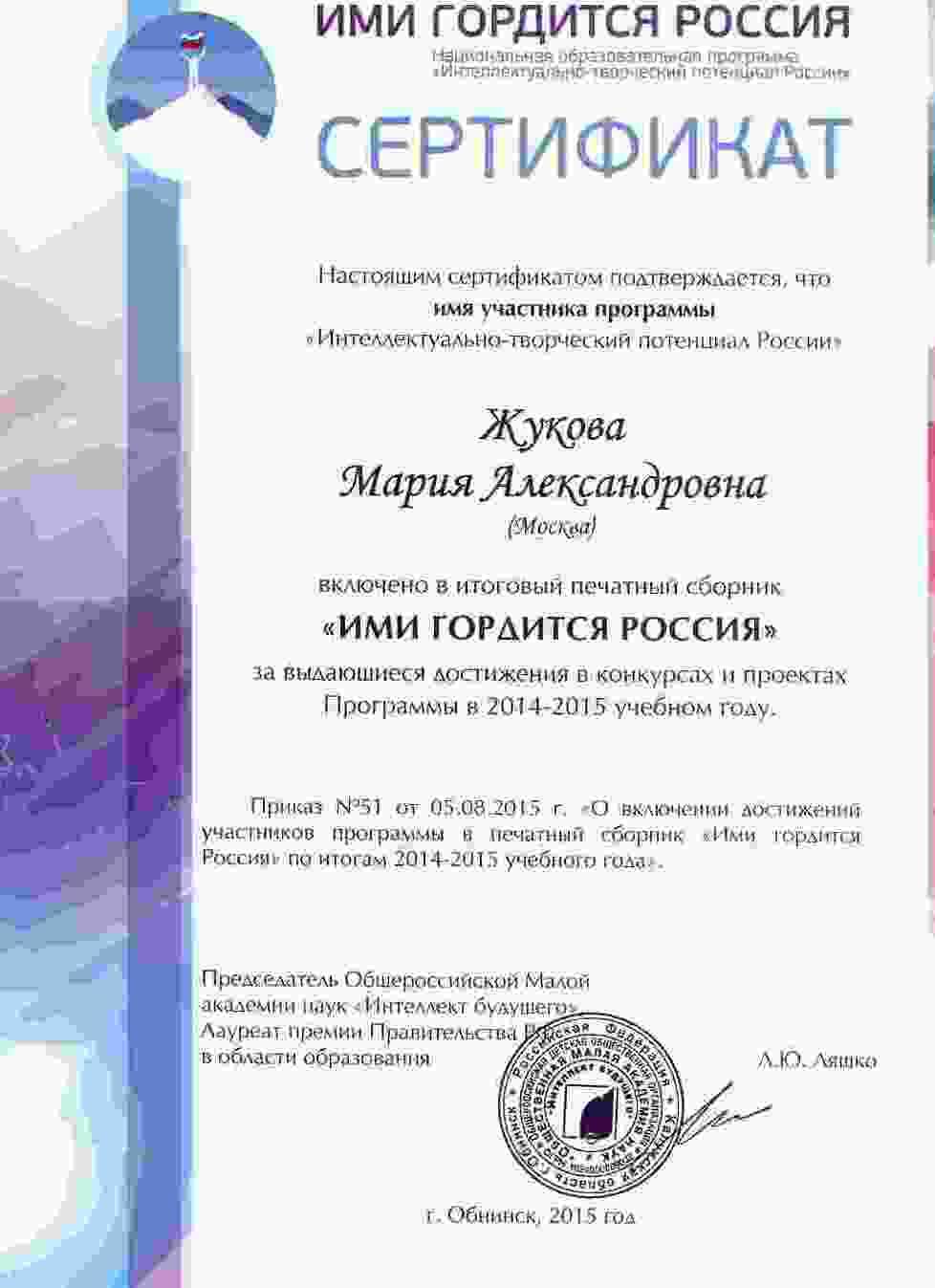 ЖУКОВА МАРИЯ АЛЕКСАНДРОВНА